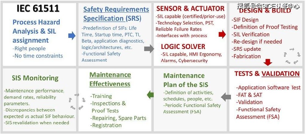 系统验证:这是一个非常重要的里程碑,包括对已安装和投入使用的SIS及其相关的SIF进行检查和测试,以验证SIS和其SIF是否符合SRS规范(IEC 61511标准第15条)。通常,这种验证是通过SAT测试来完成的。