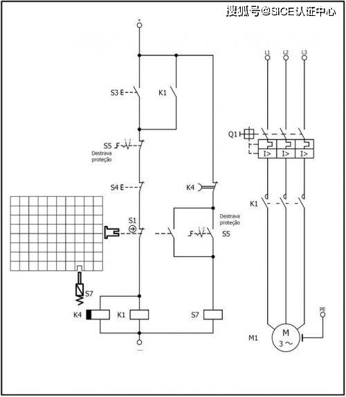在停电的情况下,断路器断开,导致封条触点打开。在电力恢复后,为了重新启动电机,必须按下S3按钮,以防止意外启动。