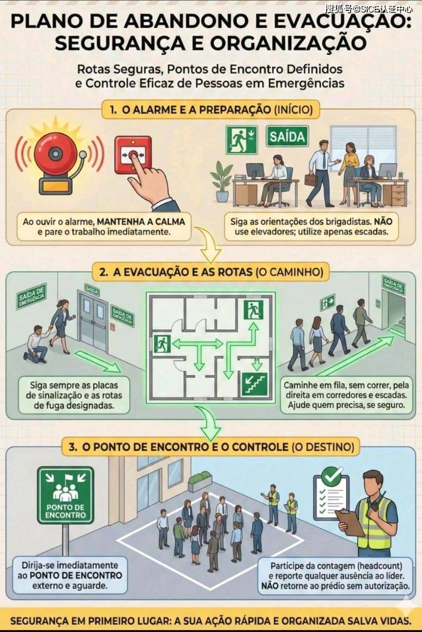 按照监管标准*NR-23*和技术标准*NBR 9077*和*NBR 14276*正确应用该计划,确保紧急情况下环境疏散的安全性与效率。