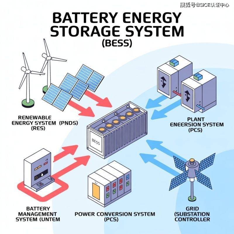 电池储能装置:这是核心组件,包括电池单元和模块,用于化学储存电能。