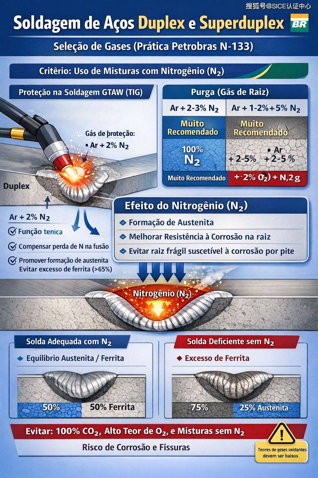 对于遵循巴西石油公司标准的项目中,双重和超双重不锈钢的焊接,气体的选择通常遵循N-133及配套焊接文件中的要求。